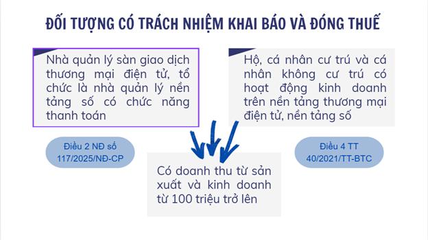 – Hộ, cá nhân cư trú và cá nhân không cư trú có hoạt động kinh doanh trên nền tảng thương mại điện tử, nền tảng số.